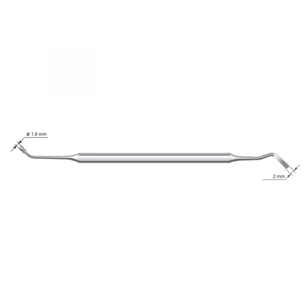 Первая рабочая часть имеет грушевидное окончание, расположенное относительно ручки под углом 40°. Диаметр грушевидной рабочей части — 1,6 мм.